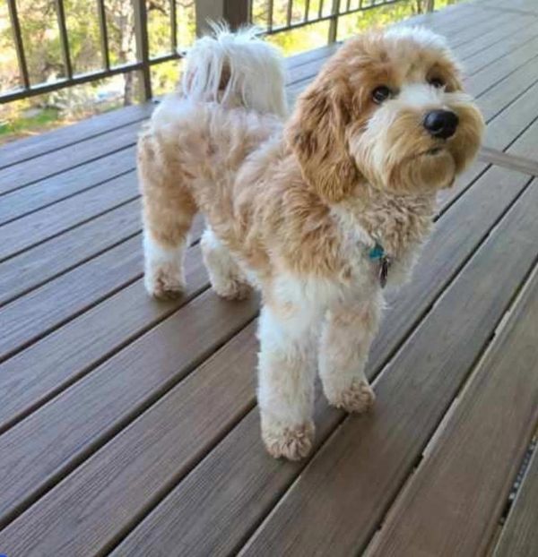 Registration: ALAA- 113700 DOB: 12/18/2021 Mojo AKA Gracie is a mEDIUM Multigen Australian Labradoodle at around 25 lbs.. She is the daughter of Summer and Maverick. She has a cuddly and loving personality and just wants to be around her family at all times like a shadow whether is be going for long walks or just laying on the couch watching TV and cuddling., she is an amzing dog. She has a beautiful apricot loose fleece coat with tons of white markings. She lives in a wonderful guardian home in the Vacaville, Ca. area. OFA Hips/Elbows: Fair/Normal CERF: Clear PRA: Clear EIC: Clear vWD: Clear DM: Clear IC: Clear